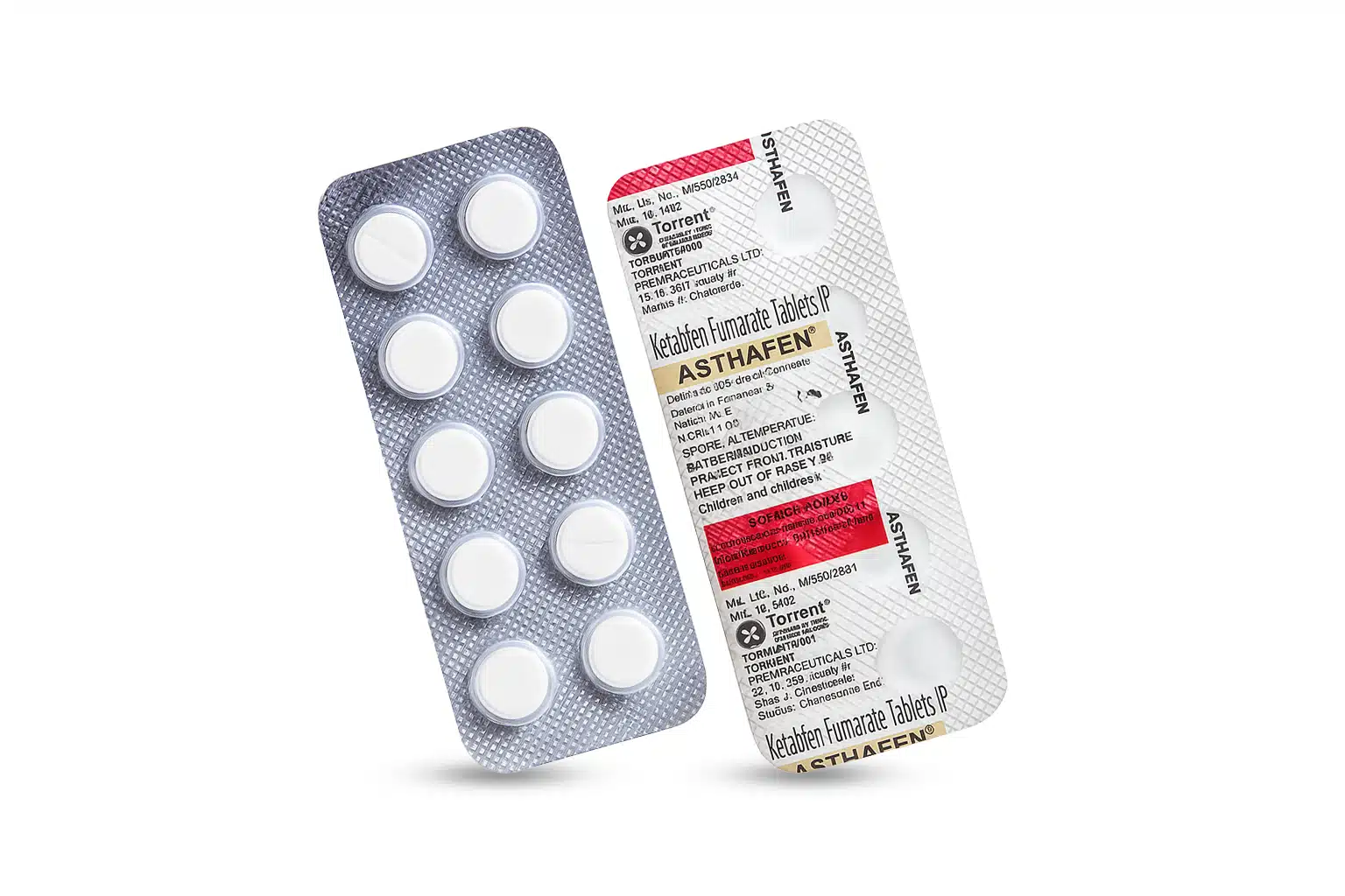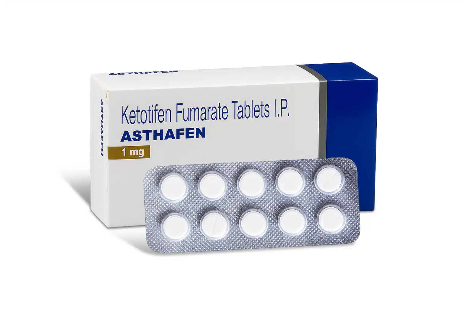 Asthafen 1 mg is a once-daily oral tablet formulated to help control allergic symptoms and to support the prevention of mild atopic asthma flare-ups in people prone to allergy-driven breathing problems. The active ingredient works as an antihistamine and a mast-cell stabilizer.