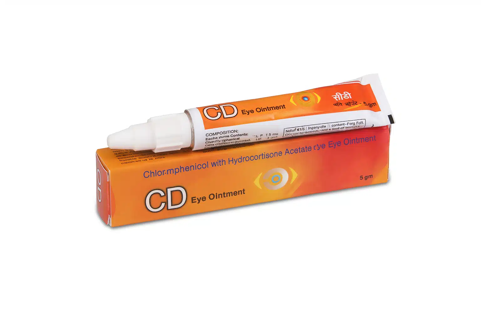 CD eye 5 gm is an ophthalmic ointment commonly used for bacterial eye infections and associated inflammation. It is a small tube of medicated ointment that combines an antibiotic (chloramphenicol) with a mild steroid in many formulations.