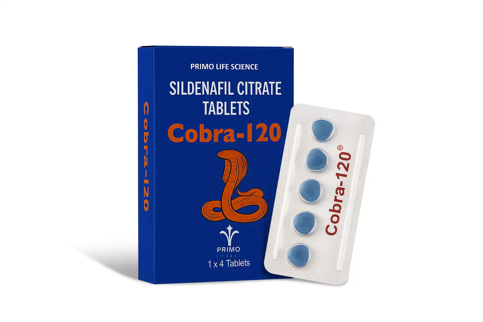 Cobra 120mg Blue is a high-potency erectile dysfunction (ED) tablet formulated with 120mg of Sildenafil Citrate – the same powerful ingredient found in Viagra, but with a stronger kick. Designed for men who need extra strength to achieve a firm and lasting erection, Cobra 120 delivers reliable performance when it matters most.