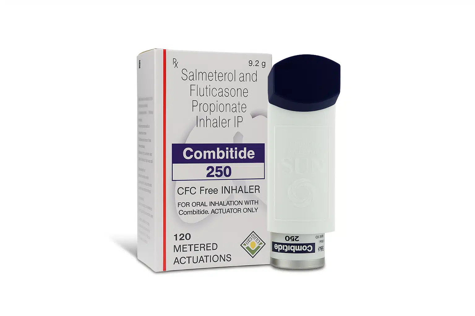 Combitide 250 mcg Inhaler is a combination medication containing Salmeterol and Fluticasone Propionate used for the treatment of asthma and chronic obstructive pulmonary disease. Salmeterol that relaxes airway muscles, increasing airflow to the lungs and making breathing easier. Fluticasone Propionate that relaxes airway muscles, increasing airflow to the lungs and making breathing easier.