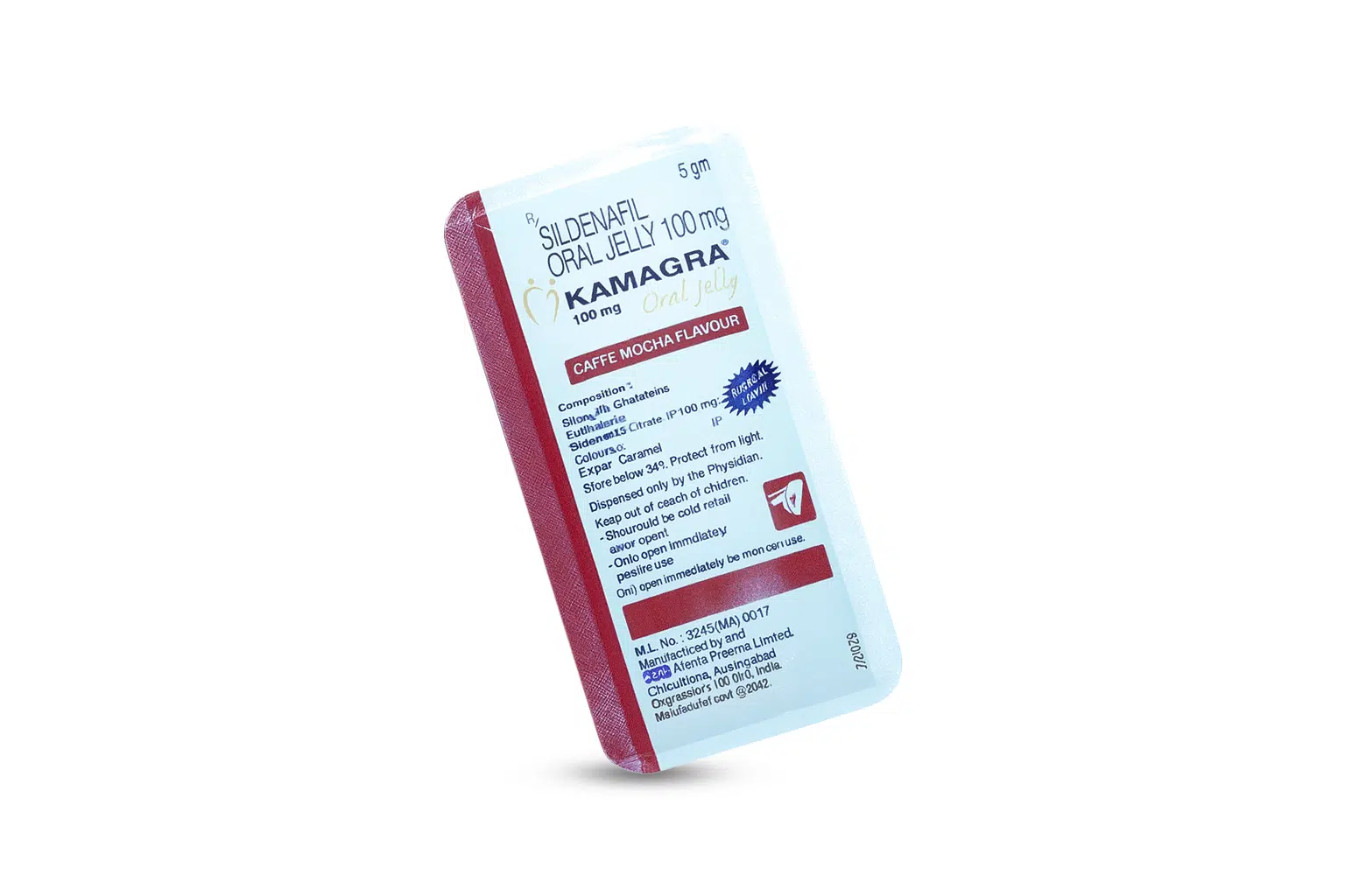 Kamagra Oral Jelly 100 mg (coffee flavour) is an oral gel (sachet) formulation whose active ingredient is sildenafil citrate 100 mg (equivalent to 100 mg sildenafil). It is marketed as an erectile dysfunction (ED) treatment intended to improve the ability to achieve and maintain an erection sufficient for sexual activity when sexual stimulation is present.