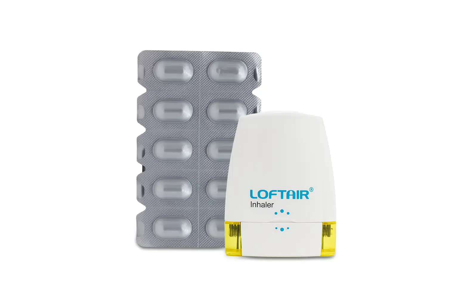Pharmacokinetics of Loftair Inhaler involves the absorption of the active components through the lung tissue into systemic circulation, where they produce their therapeutic effects. Following inhalation, Indacaterol is rapidly absorbed with peak plasma concentrations achieved within 15 minutes. Glycopyrrolate is also absorbed through the lungs with onset of action within 5 minutes. Both drugs have long half-lives allowing for once-daily dosing. The medications are metabolized primarily in the liver and excreted through both renal and fecal routes.