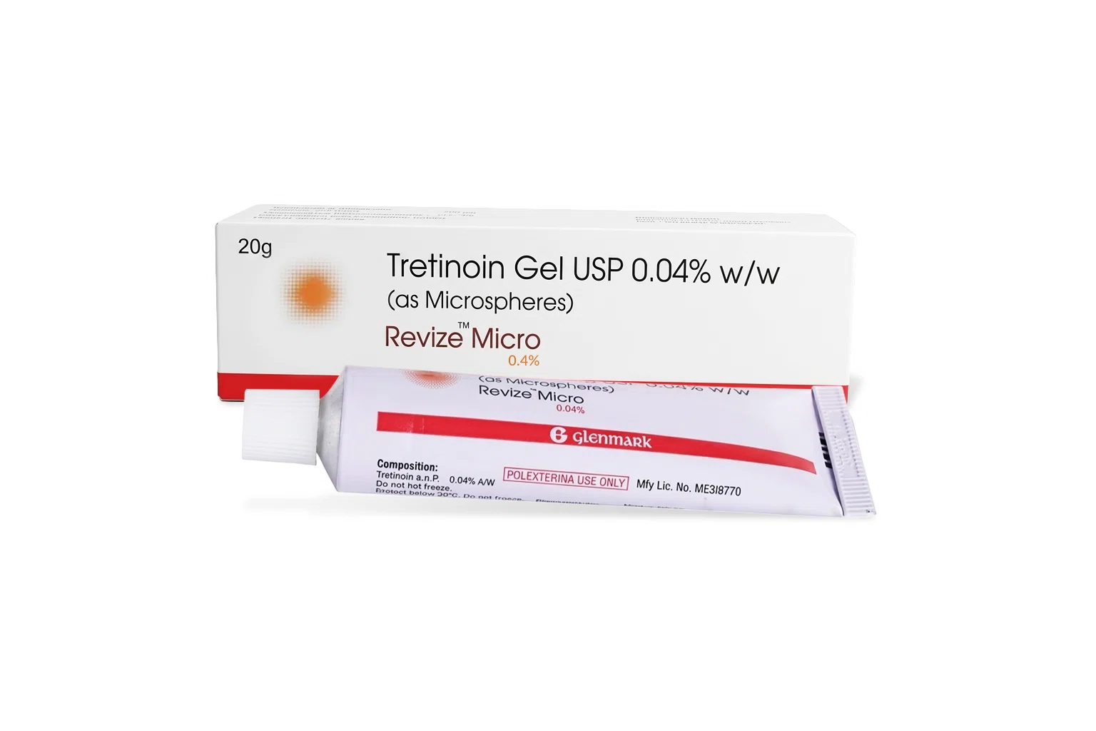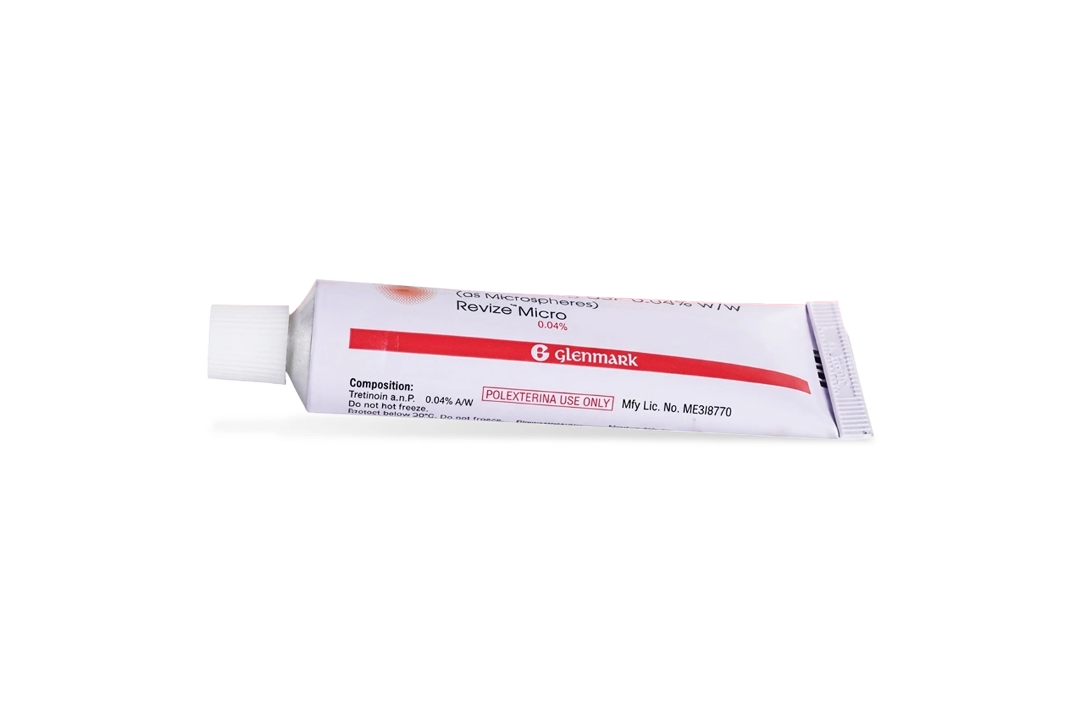 Revize Micro 0.04% gel is used for the treatment of acne. It contains tretinoin which is a synthetic derivative of Vitamin A. Tretinoin is the ingredient that helps to improve skin texture, reduces dark spots, treats acne by speeding up cell turnover and collagen production. Â