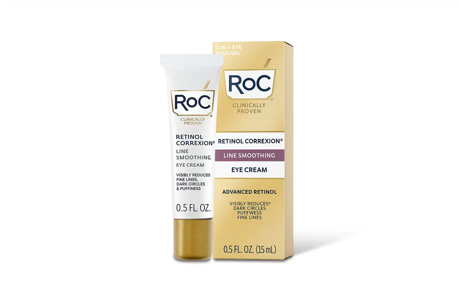 RoC Retinol Correxion Line Smoothing Eye Cream is a cosmetic product formulated to address multiple signs of aging around the delicate eye area, including fine lines, crow’s feet, dark circles, and puffiness. This eye cream contains pure RoC Retinol combined with an exclusive mineral complex (zinc gluconate, copper gluconate, and magnesium aspartate) that work synergistically to stimulate collagen production, enhance cell turnover, and visibly rejuvenate the periorbital skin.