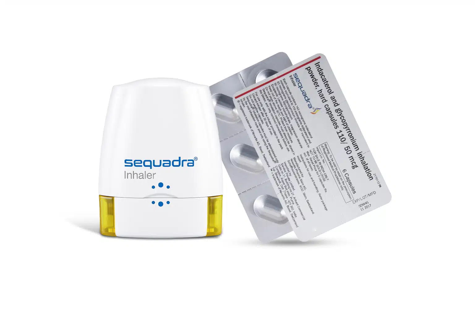Sequadra Inhaler (indacaterol 110 mcg / glycopyrronium 50 mcg) is a once-daily, dual bronchodilator inhaler designed for maintenance of COPD in adults. The LABA/LAMA combination offers sustained bronchodilation, improved symptom control, and potential reduction in exacerbation frequency when used as part of a comprehensive COPD management plan. It must be used with correct technique, not as a rescue inhaler, and under the supervision of a healthcare provider who will weigh benefits and risks, particularly in patients with cardiovascular disease, narrow-angle glaucoma, or urinary retention.