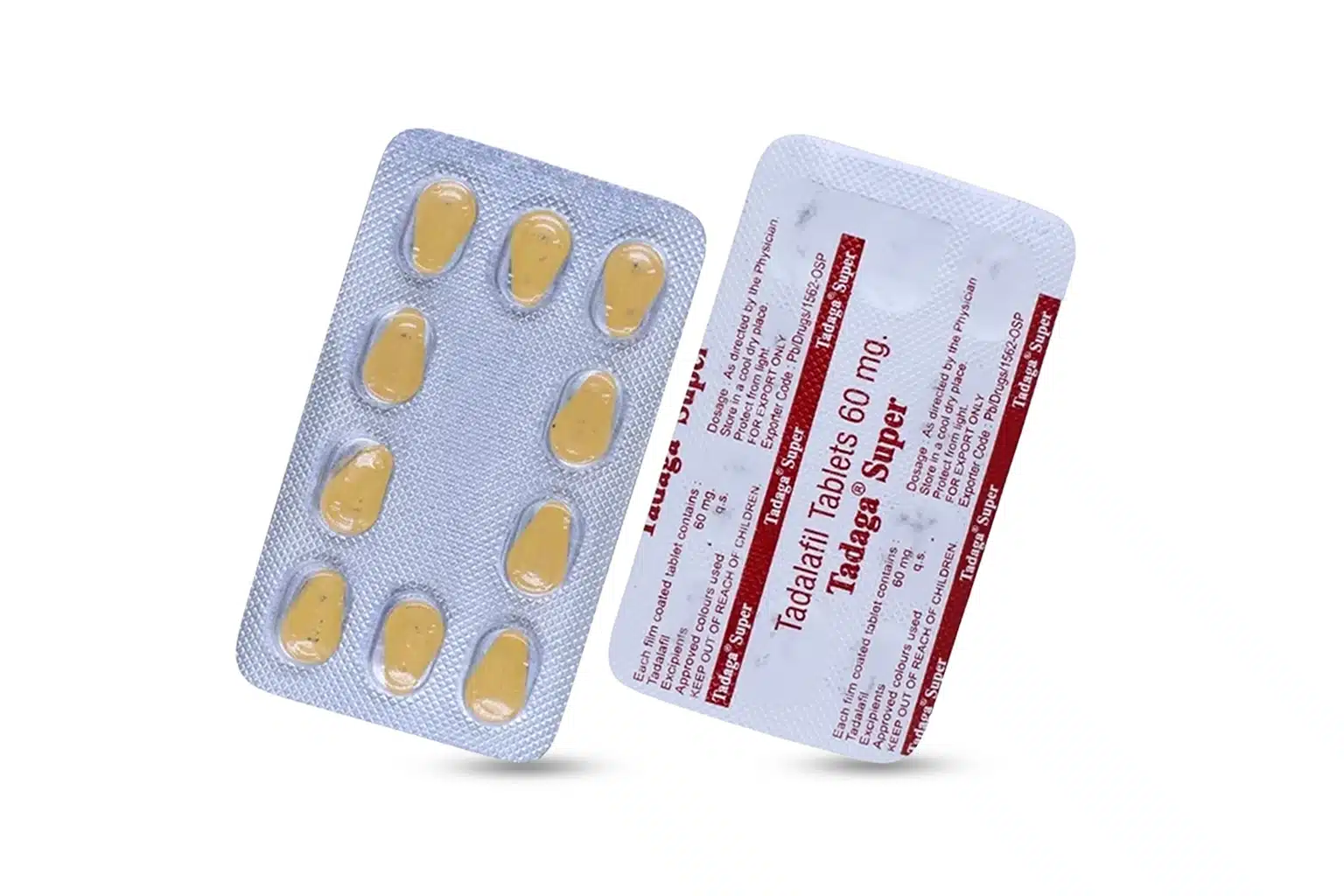Tadaga Super 60mg contains tadalafil as an active ingredient. Tadalafil belongs to a group of medicines called PDE5 inhibitors. Inadequate blood supply to the penis is the main cause of ED. The PDE5 enzyme mainly causes these erection difficulties in men and it mainly breaks down the cyclic GMP. The suppression or inhibition of this enzyme leads to increased levels of cyclic guanophosphate. So, increased levels of cGMP increase penile blood flow, which ultimately leads to an erection. Tadalafil is a good treatment for erectile dysfunction because this process improves the capacity to acquire and maintain an erection. However, these pills work more efficiently when a person is sexually stimulated.