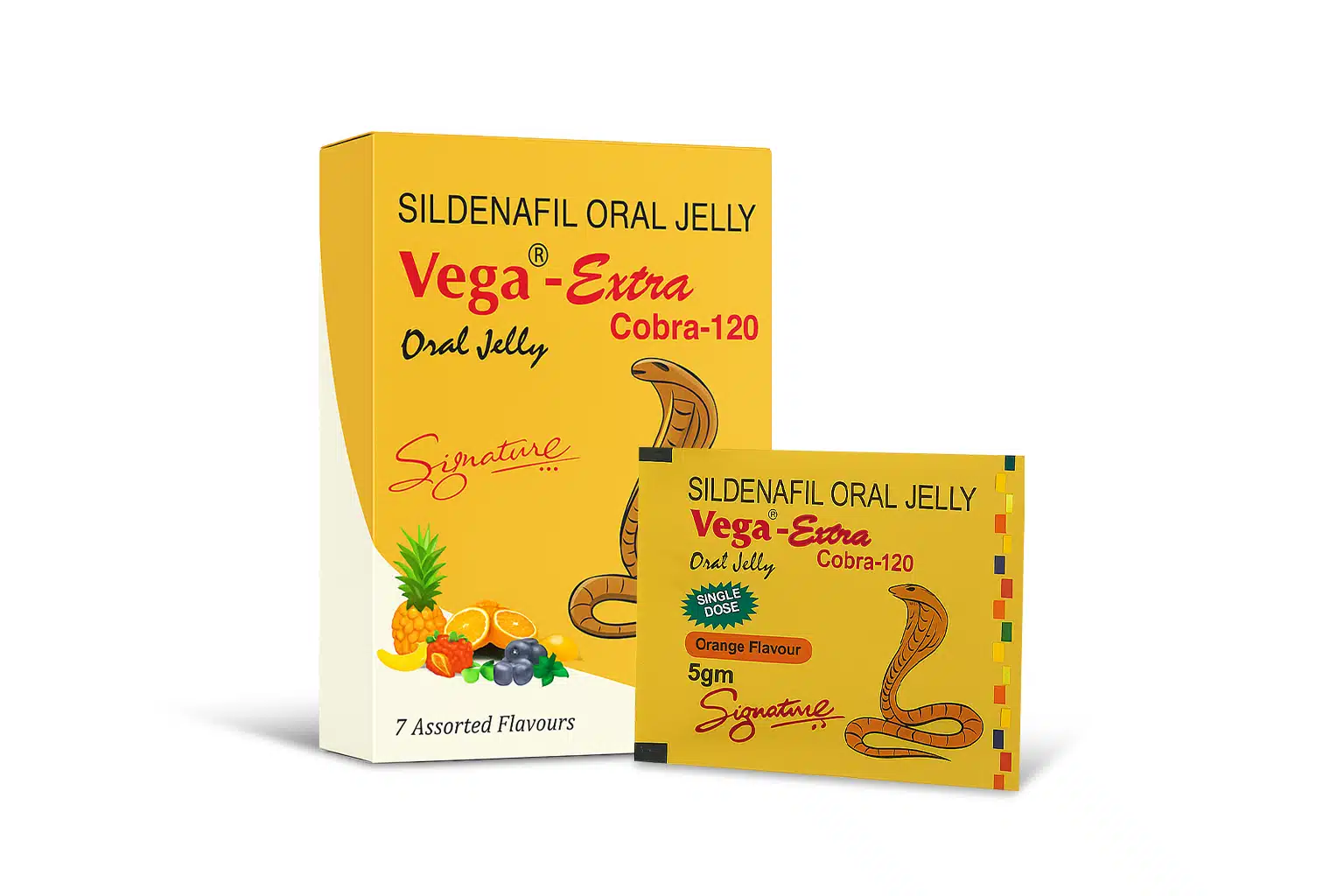 You can purchase Vega-Extra Cobra oral jelly online or in a pharmacy store. It is related to the phosphodiesterase-5 (PDE5) drug family. After taking this oral jelly, it will help you get a complete erection. For harder erections the body releases a chemical called GMP, which is responsible for making blood vessels relax. The main ingredient is sildenafil, which affects the GMP and makes it last longer during sexual intercourse. As a result, the blood flow increases in your penile area. It works perfectly by helping a person get a proper erection during sexual activity.Â